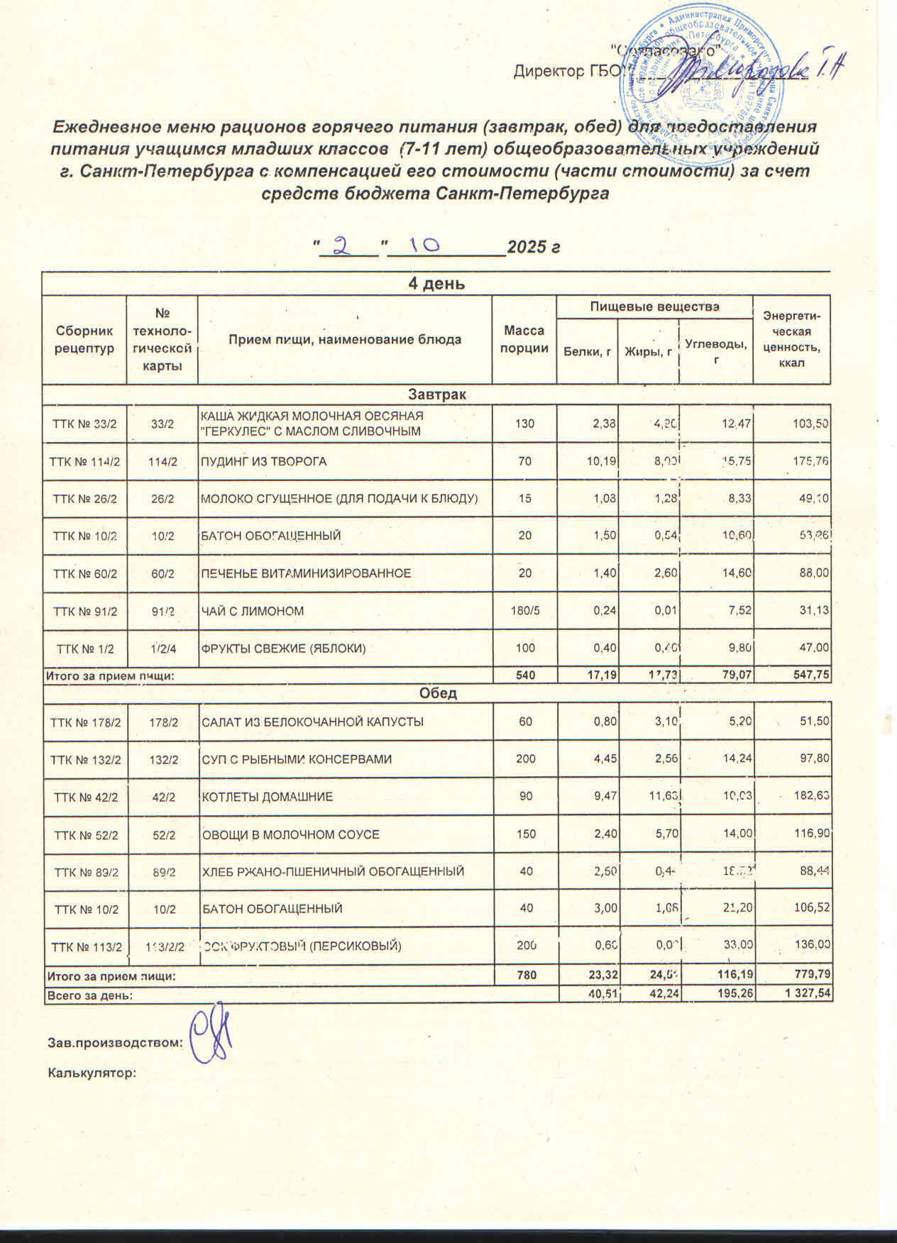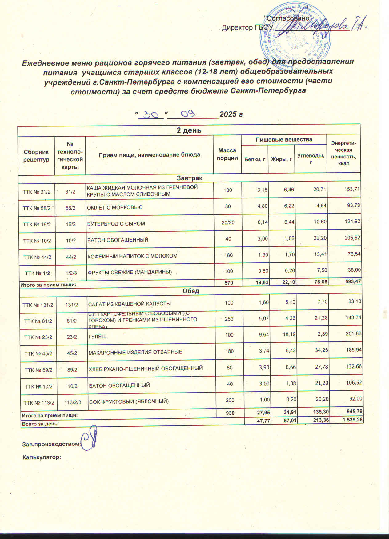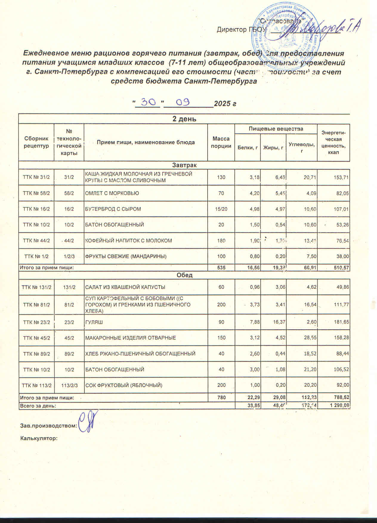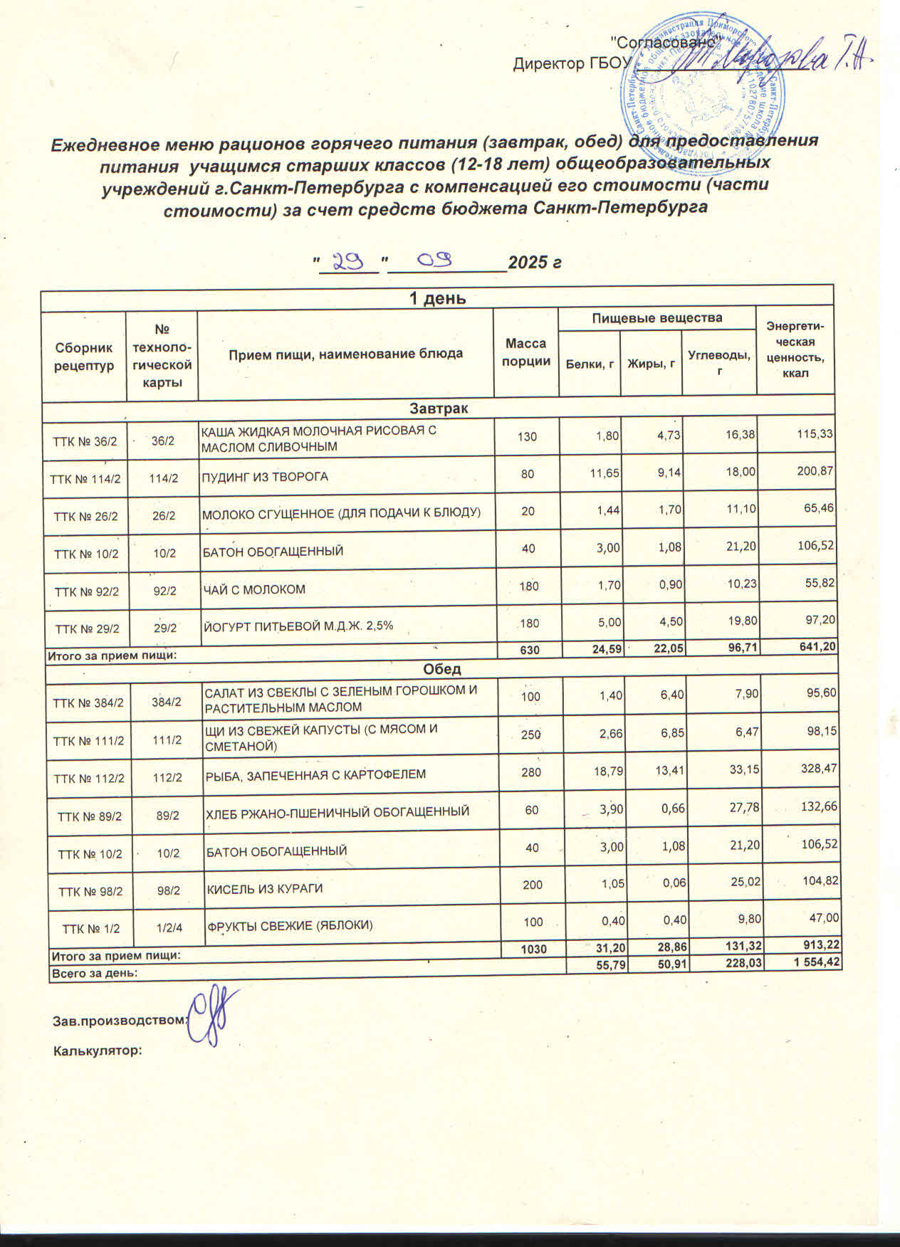 Ответственные за организацию питания в ГБОУ школа № 59 Приморского района: