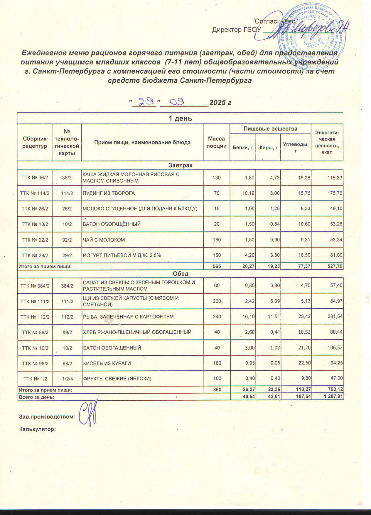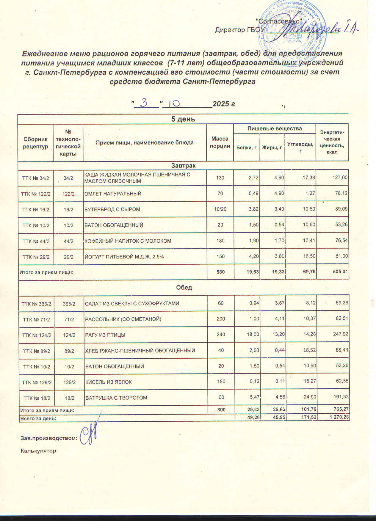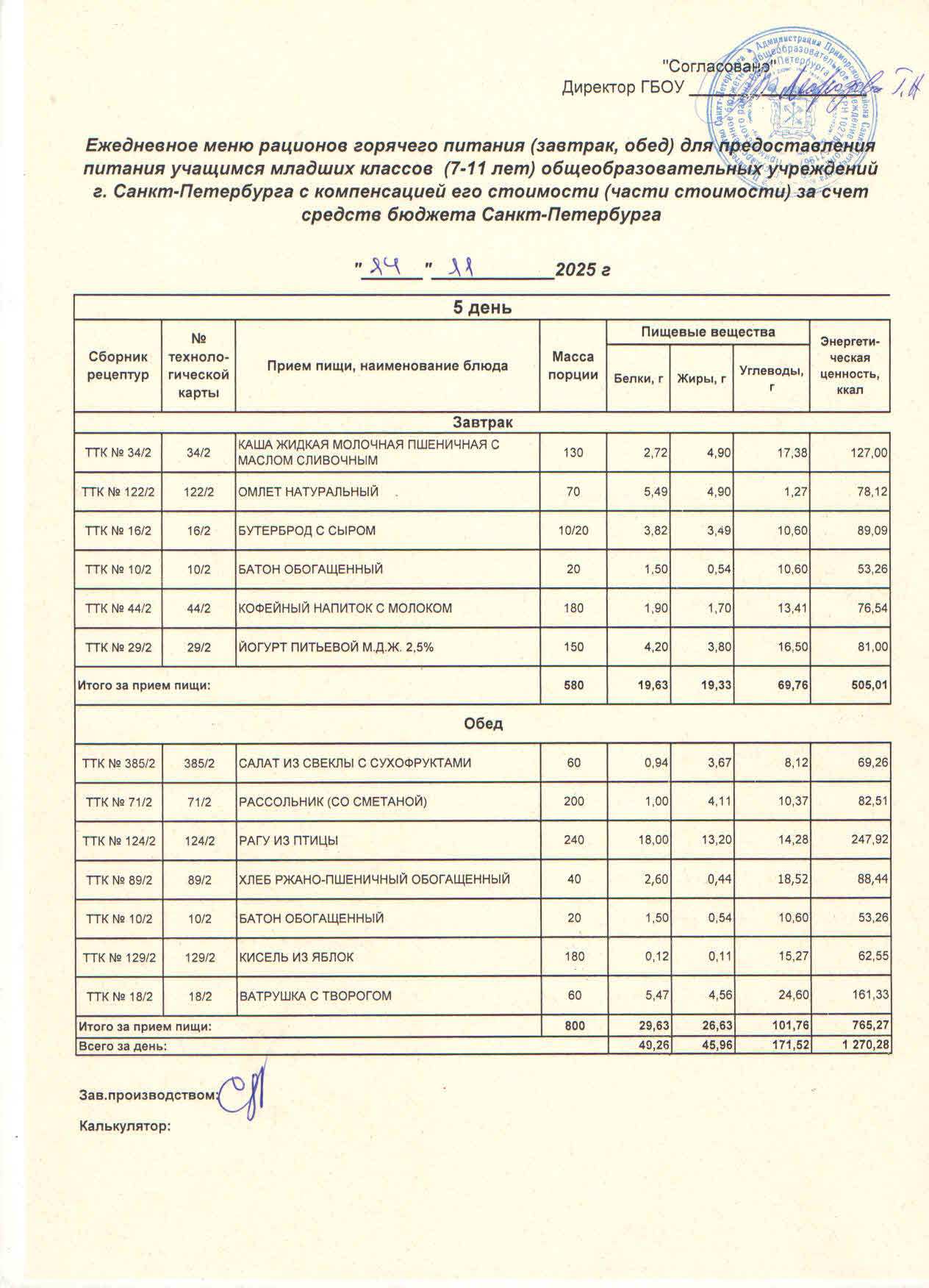 Ответственные за организацию питания в ГБОУ школа № 59 Приморского района: