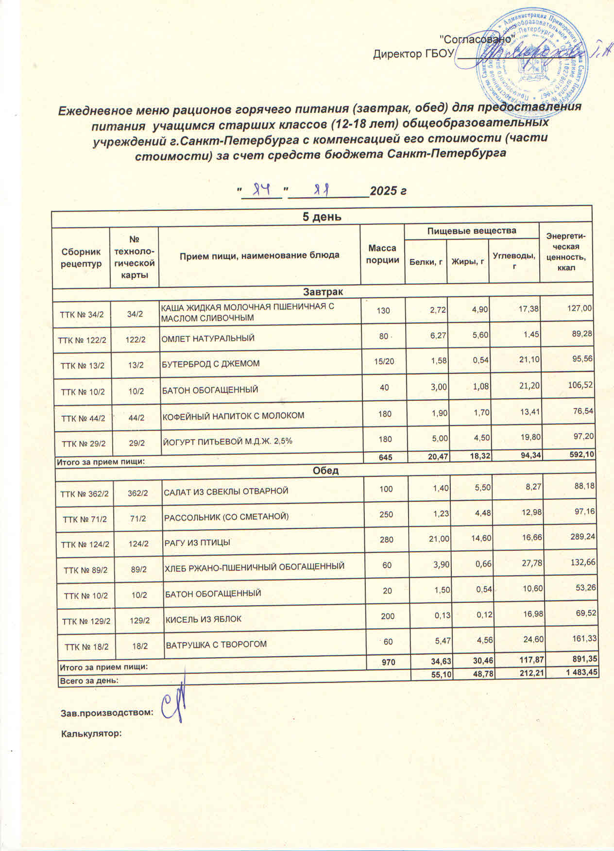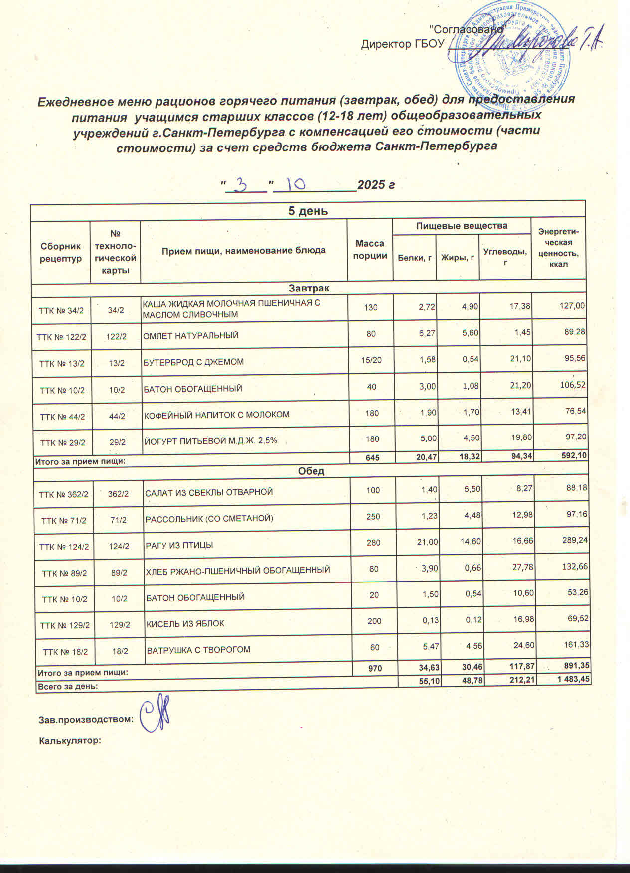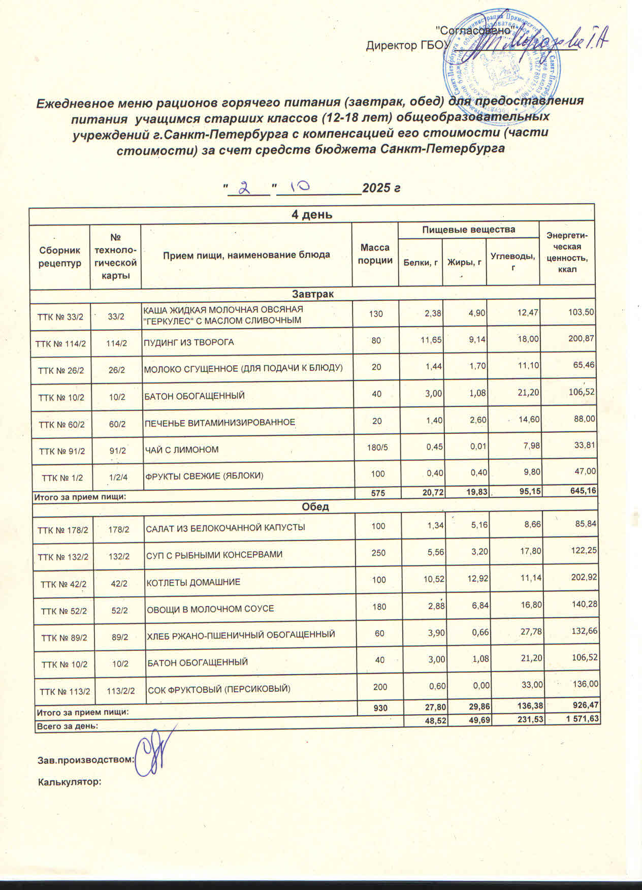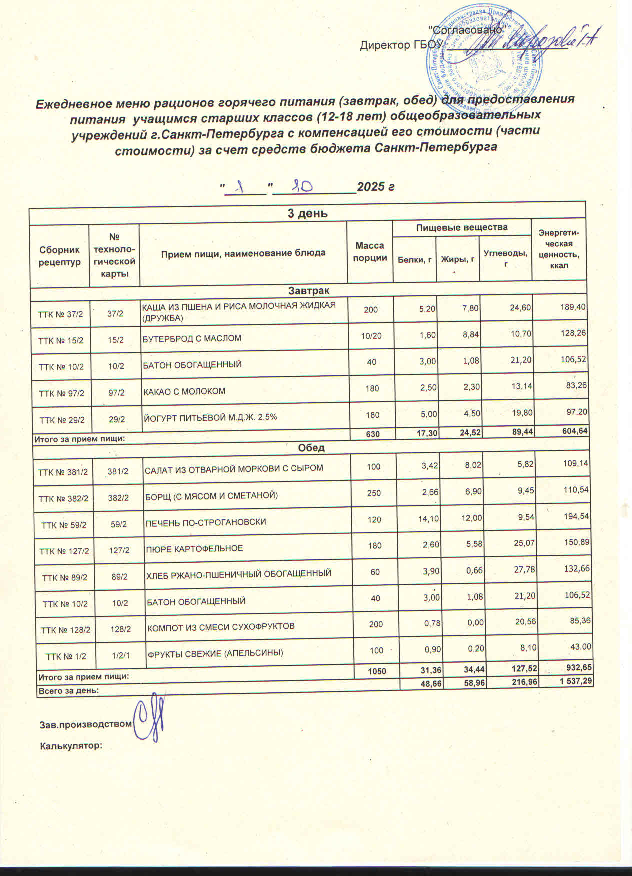Ответственные за организацию питания в ГБОУ школа № 59 Приморского района: