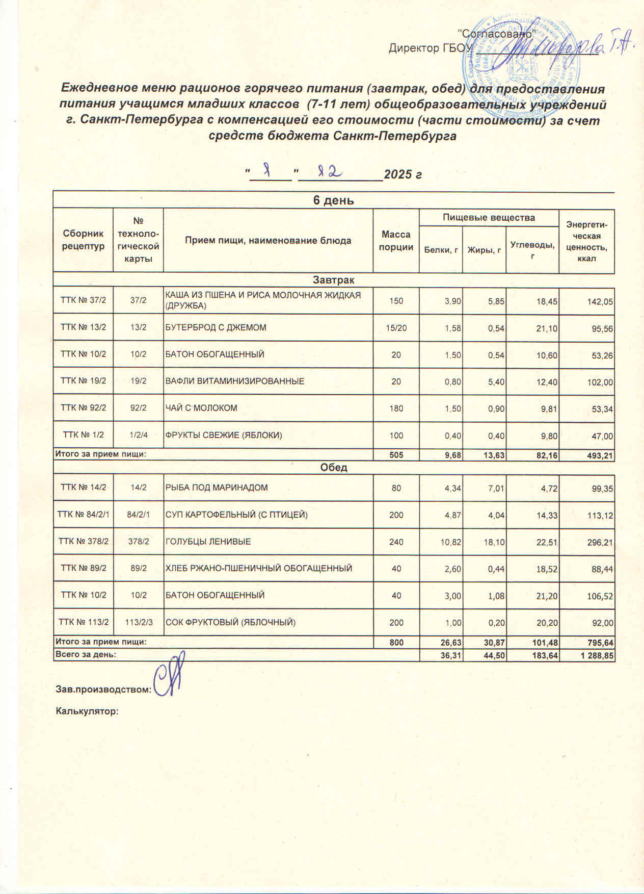 Акты проверки комиссии по контролю за организацией и качеством питания обучающихся в столовой образовательной организации за 2025