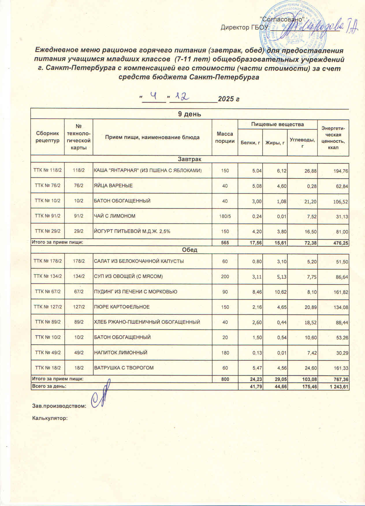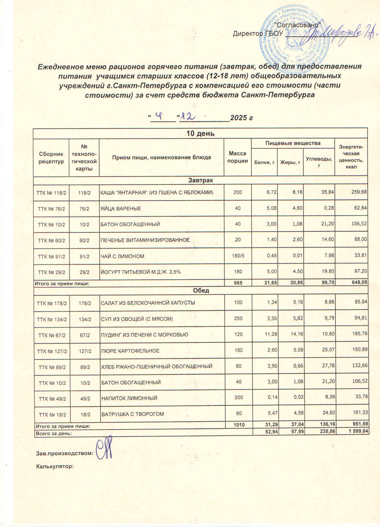 Ответственные за организацию питания в ГБОУ школа № 59 Приморского района: