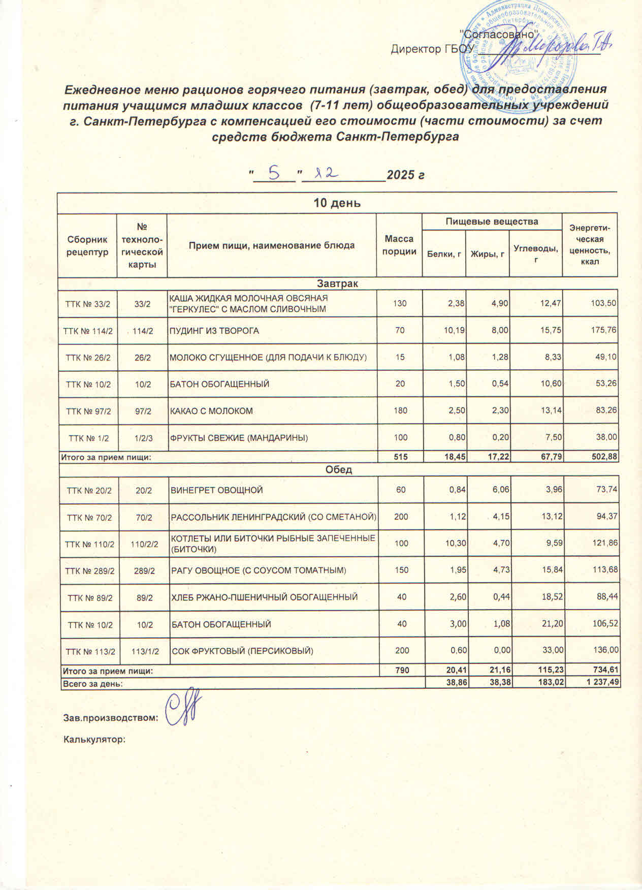 - школьники 1-4 классов (завтрак)