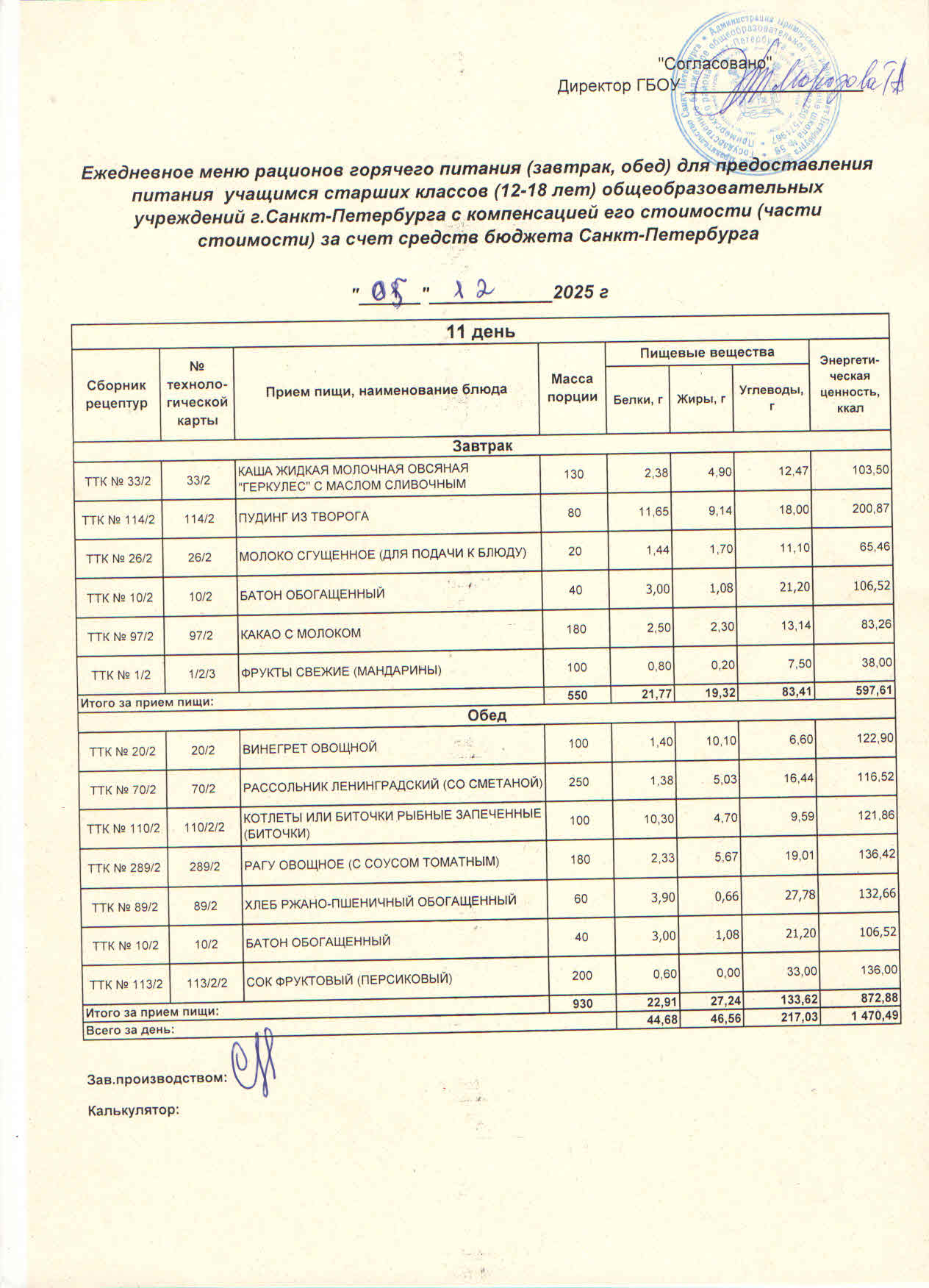 Заявитель несет ответственность за достоверность и полноту представляемых сведений и документов, являющихся основанием для предоставления питания.